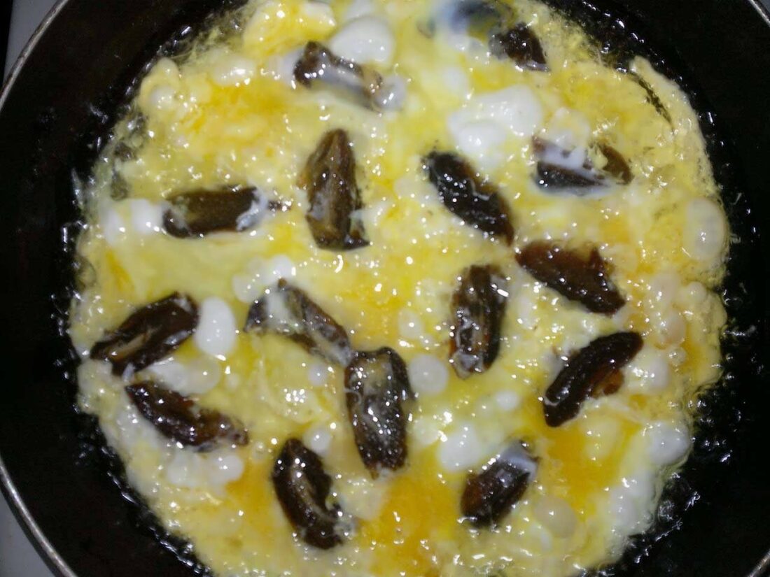 تخم مرغ خرما سرخ کرده به همراه دورچین سبحان