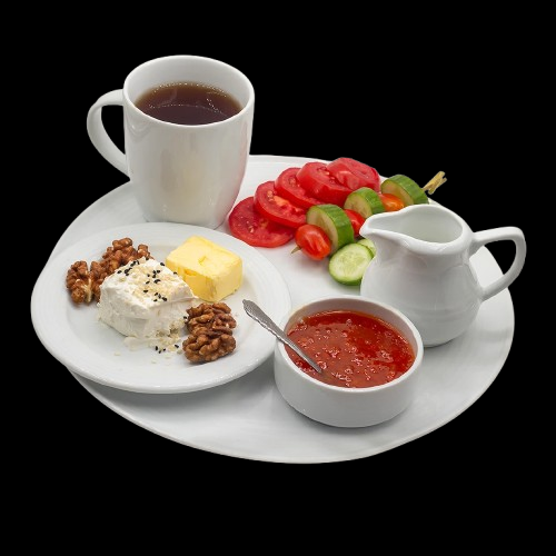 پنیر تبریز،گردو، خیار گوجه ، مربا، عسل، کره،چای دمی